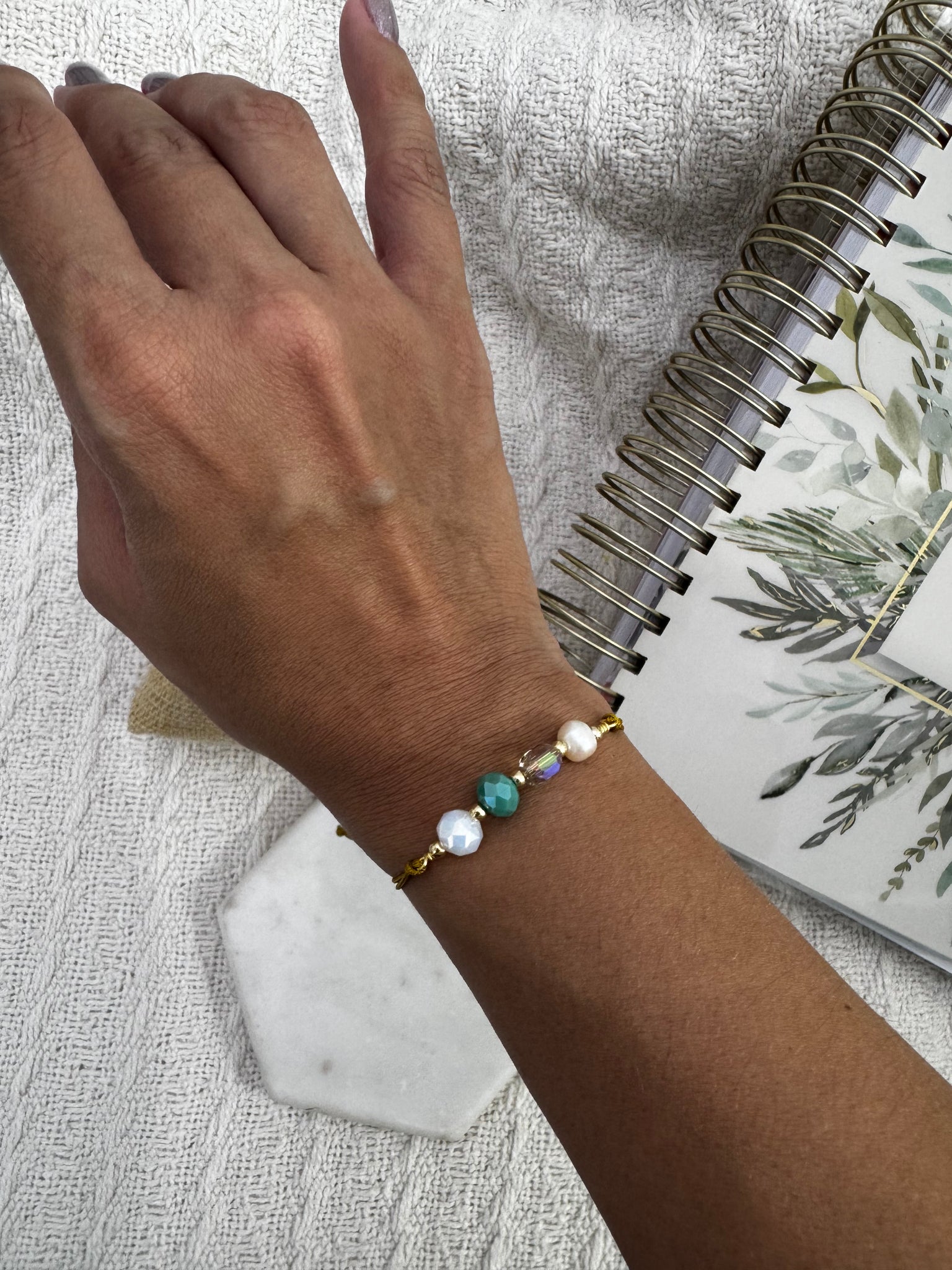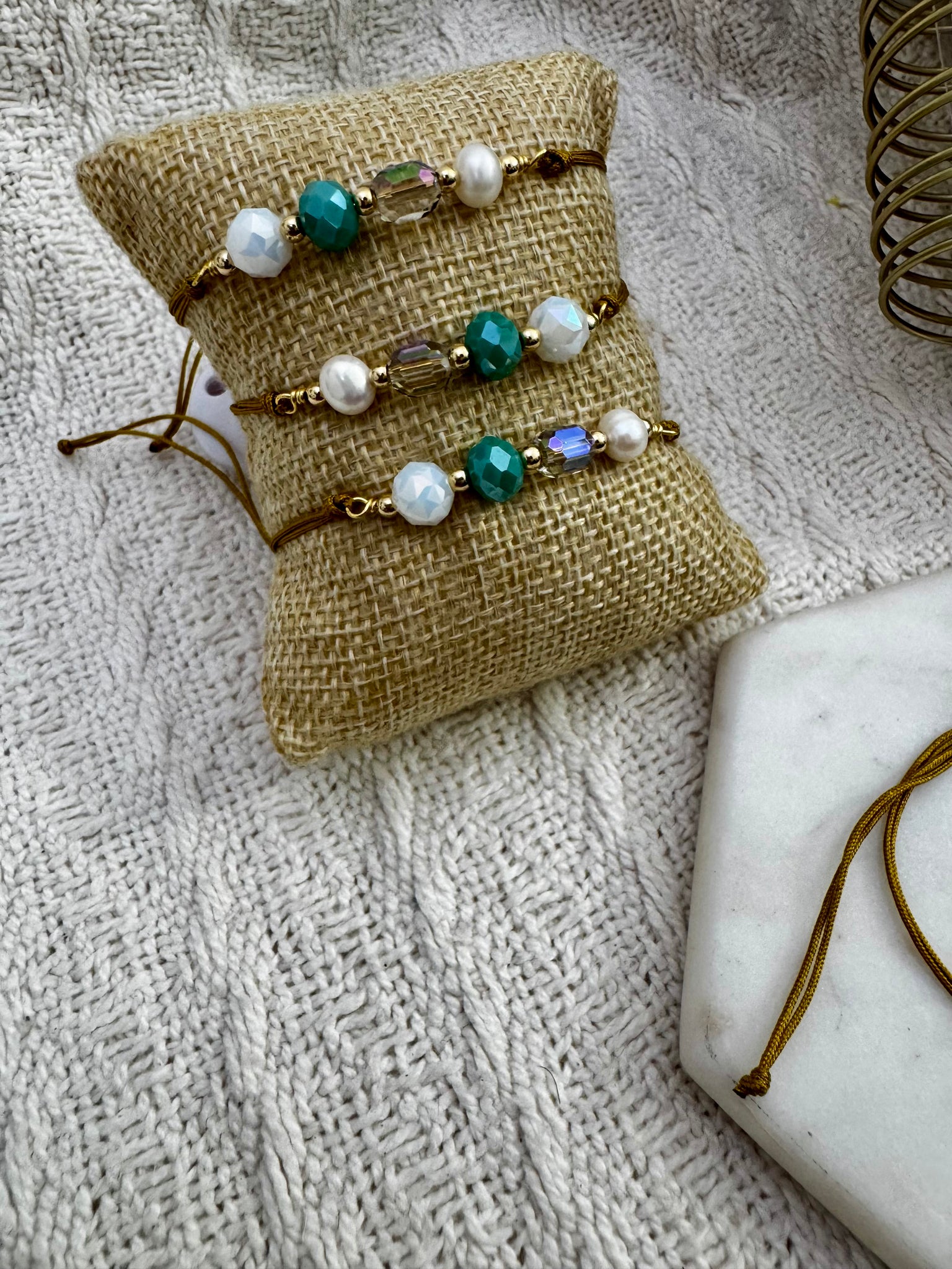 Pulsera ajustable en hilo nylon perfecta para combinar o usarla sola. Al ser ajustable sirve a la mayoría de los tamaños. La combinación de colores es perfectamente inspirada en las costas del Mar Caribe.